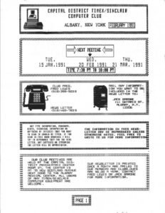 Capital District Timex-Sinclair Computer Club Feb 1991 Date: February 1991 See all issues of Capital District Timex-Sinclair Computer Club newsletter Read the issue Articles Title Description Computers Club News
