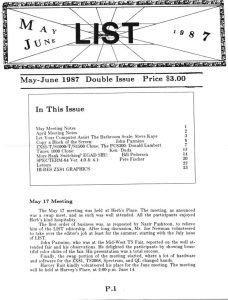 LISTing Newsletter May – June 1987