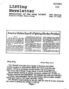 LISTing Newsletter September 1995