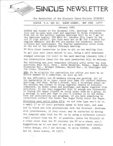 SINCUS v1 n1 Volume: 1 Issue: 1 See all issues of Sincus News Read the issue Articles Title Description Computers Club Notes Sinclairs Need Solid State TVs Sinclair ZX81