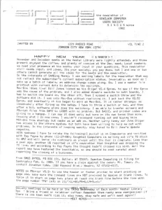 November and December meetings lightly attended. Club gets Max-Dos to work on their setup. Knighted Computers is selling out its TS stock to WMJ. CATS hosting Capitalfest in May. |