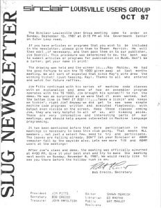 SLUG Newsletter Oct 1987