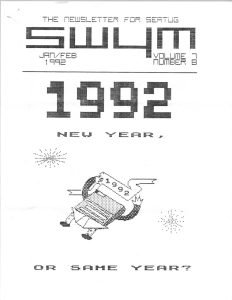 SWYM v7 n8 Jan-Feb 1992 Date: January - February 1992 Volume: 7 Issue: 8 See all issues of SWYM Read the issue Articles Title Description Computers Input & Output QL Primer Sinclair QL Random Bits