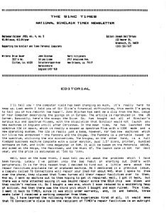 | Editorial | Spectrum 128; Timex still repairing 2068s; catalogs from suppliers. | |