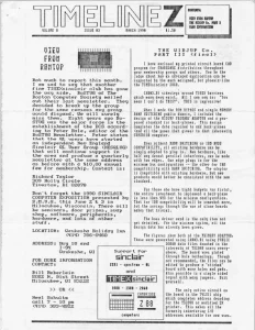 TimeLinez v8 n3 Mar 1990 Date: March 1990 Volume: 8 Issue: 3 See all issues of Timelinez Read the issue Articles Title Description Computers The WIDJUP Co. Part III Timex/Sinclair 2068 View from the RAMTOP